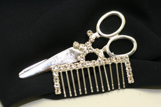 SCISSORS/COMB (Crystal/Silver) Rhinestone Brooch Pin, Hair Solon Accessories, Hairdresser Pin Stylist