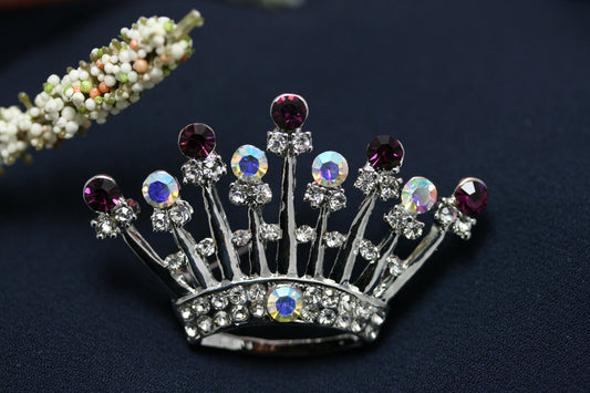 Silver Crystal Crown Jewelry, Unique Fashion Rhinestone Princess Vintage Royal Crown Brooch Lapel Pin Jewelry, Clear & Purple Stone Crown