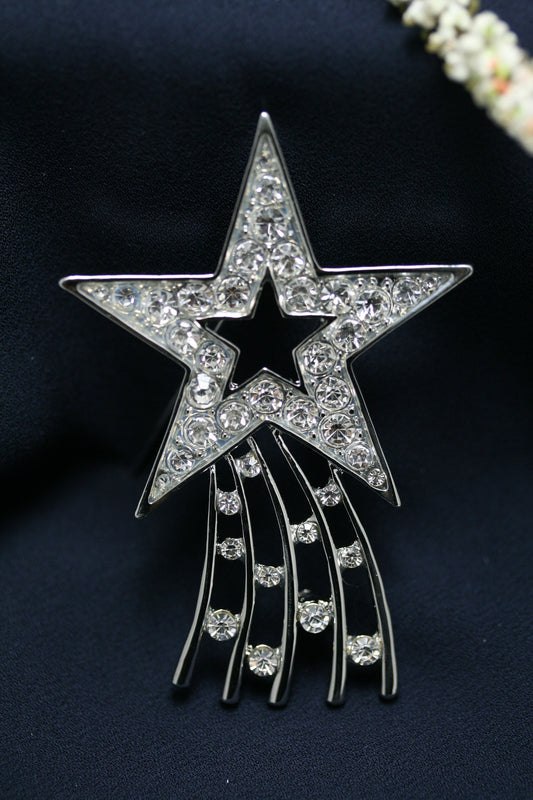 Silver Plated Rhinestone Shooting Star Brooch Pin