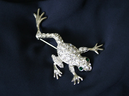 Silver Chunky Rhinestone Frog Brooch Silvery Tone Clear Crystal Colored Rhinestones Frog Toad Brooch Pin