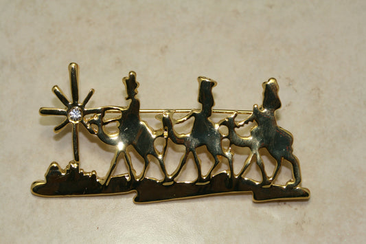 Vintage Gold Tone Three Wise Men Brooch Pin, Holiday Jewelry, Christmas Jewelry