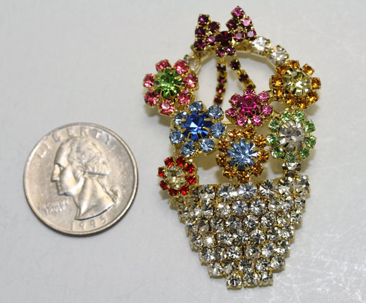 Vintage Design Rhinestone Easter Flower Basket Brooch Pin, Easter Egg Basket Jewelry Gift, Easter Brooch Jewelry
