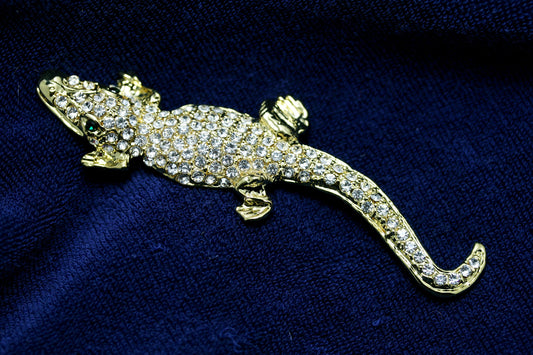 Vintage Jewelry Beautiful Gold Tone and Rhinestone Alligator Pin Brooch, Crocodile Brooch, Animal Brooch, Lizard Brooch