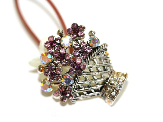 Vintage Flower Basket Brooch Multicolor Pink Purple Rhinestones Brooch Pin Antique silver Flower Basket Brooch