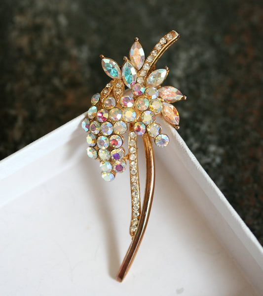 Vintage iridescent aurora borealis rhinestone brooch Flower Pin - Antique jewelry - wedding, bridal, unique gift