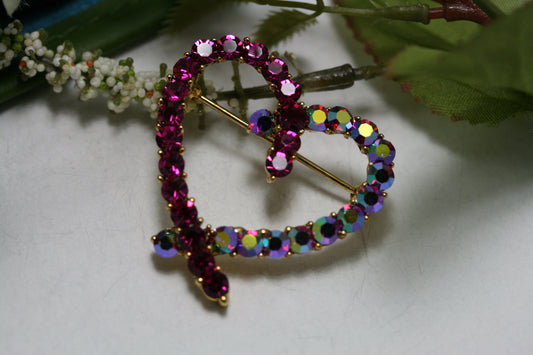 Rhinestone Pink Topaz Heart Brooch Pin, Crystal Valentine's day Heart Jewelry For Her