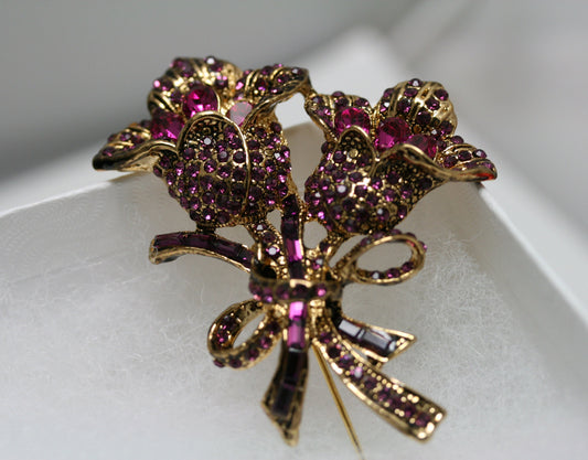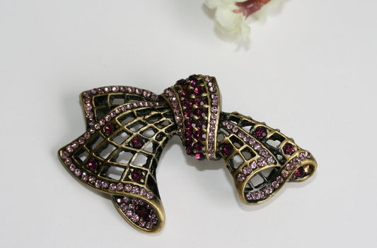 Vintage Purple Crystal Bowe Brooch Antique Beauty Bow Brooch Pin Rhinestone Statement Purple Ribbon Brooch