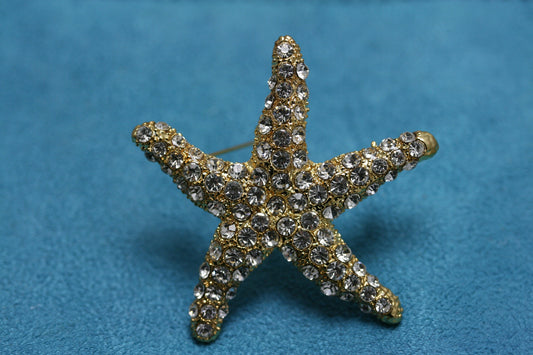 Rhinestone starfish brooch pin in gold-plate, Crystal Sea life Jewelry Gift, Rhinestone brooch for ocean beach bouquet