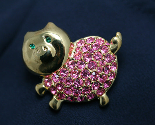 Pink Pig Brooch Pin, Rhinestone Pink Pig Brooch, Crystal pig pin