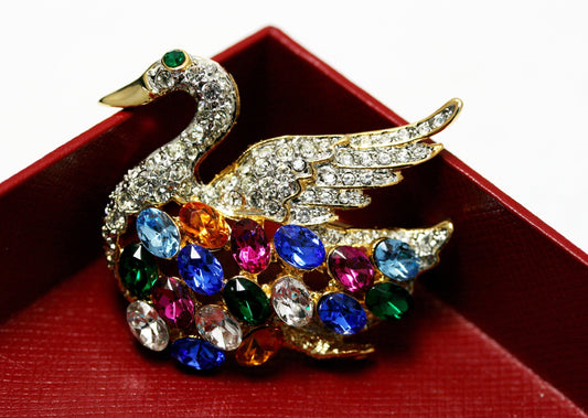 Rainbow Box Swan Brooch Pins for Women, Fashion Crystal with Swarovski Rhinestone Swan Jewelry Women's Brooches & Pins