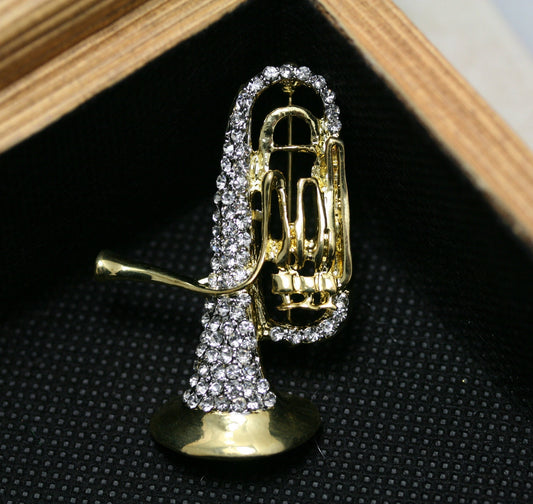 Rhinestone Trumpet Brooches Women Men 2-color Brass Instrument Party Casual Brooch Pins Gifts