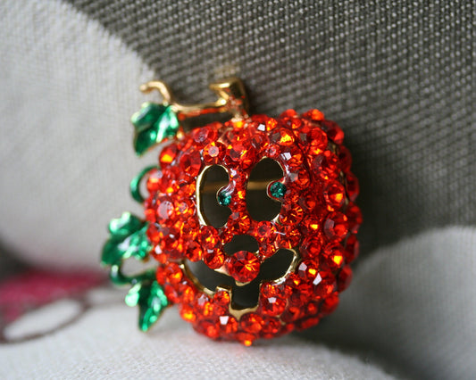 Rhinestone Orange Pumpkin Face Brooch Pin, Halloween Jewelry Gift