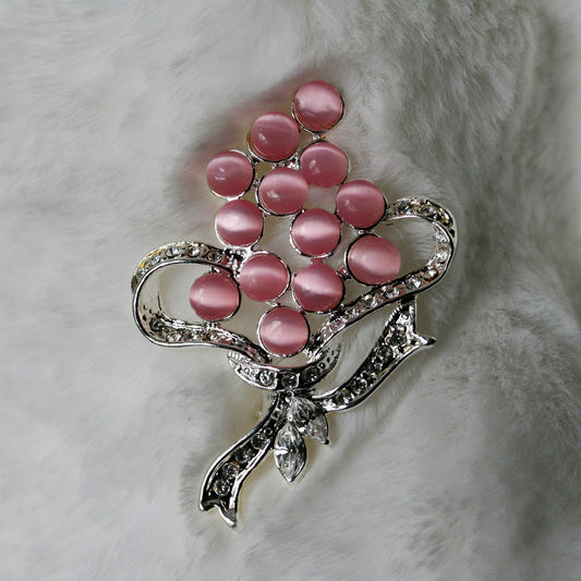 Rhinestone & Cat Eye Stone Décor Brooch, Woman's Elegant Flower Floral Bridal Wedding Bouquet Brooches Imitation Cats Eye Brooch Pins