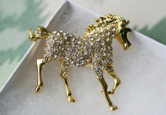 Rhinestone Gold-tone Galloping Horse Pin Horse Brooches Fashion Costume Pin Brooch jewelry gift