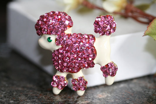 Rhinestone Poodle Dog Brooch Sparkling Crystal Poodle Dog Brooches Women Christmas Animal Brooch Pins