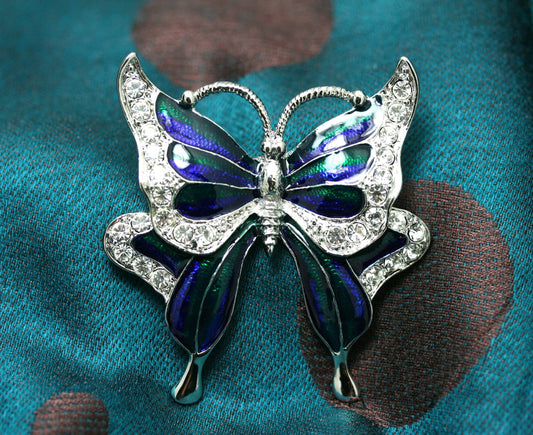 Vintage Crystal Rhinestone Butterfly Brooch Pin Blue Color Butterfly Brooches for For Women Girls Wedding/Banquet/Birthday Party