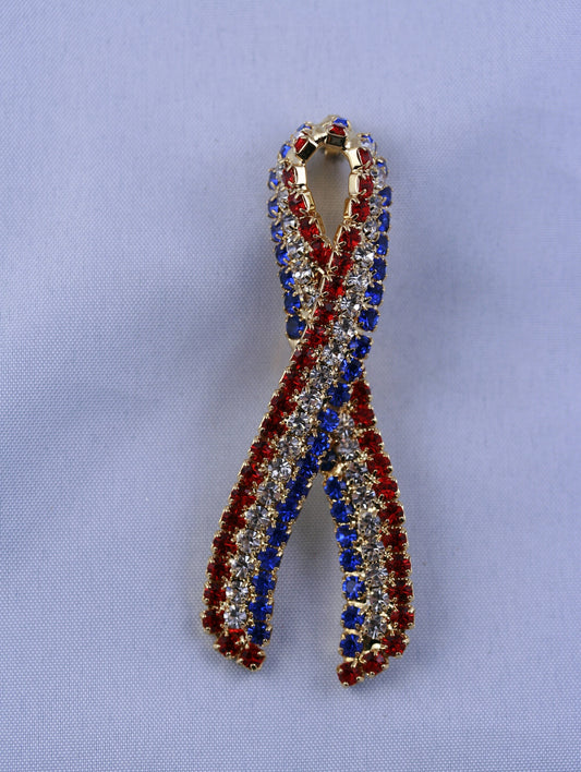Rhinestone Patriotic Ribbon Brooch, Red White Blue Ribbon Pin, Crystal USA Ribbon Pin 4th July Independence Day Jewelry