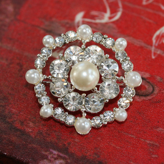 Rhinestone & Faux Pearl Décor Snowflake Design Brooch, Crystal Snowflake Pin Costume Dress Wedding Brooch