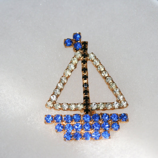 Sail Boat PIN BROOCH RHINESTONE Blue Crystal