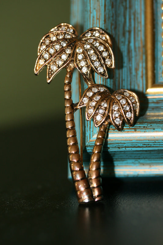 Palm Tree Pin Miami Hawaii Rhinestone Crystal Brooch Vintage Palm Tree Brooches