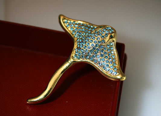Rhinestone Stingray Fish Pin Shark Manta Ray Aquamarine Brooch Rhinestone Manta Ray (Devil fish) Brooches