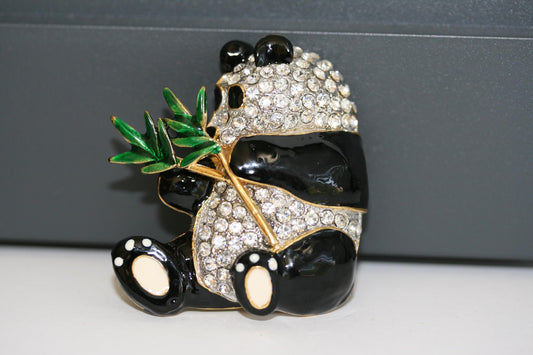 Vintage Panda Bear brooch with Clear crystals Rhinestone and black enamel. Panda Bear Pin