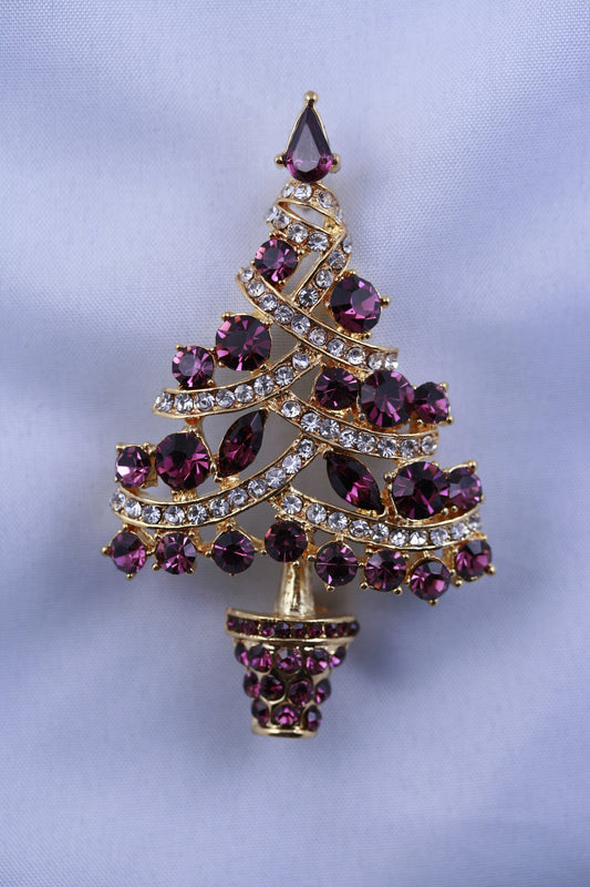 GORGEOUS PURPLE Rhinestone Christmas Tree Pin Brooch, Rich Holiday Xmas Tree Jewelry Gift