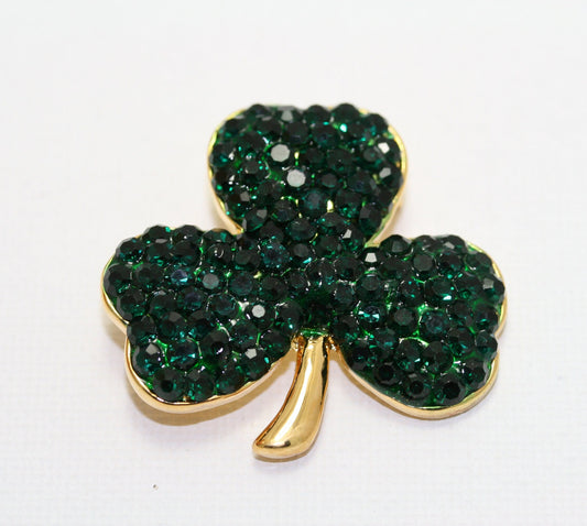 Gold Tone Saint Patrick Day Rhinestones Three Leaf Clover Pin Brooch Saint Patrick's Day Shamrock Jewelry Gift