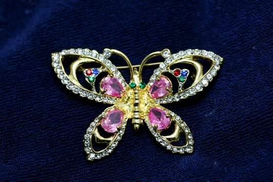 Gorgeous Vintage Multicolor Rhinestone Butterfly Brooch Pin, Spring Butterfly Fashion Jewelry