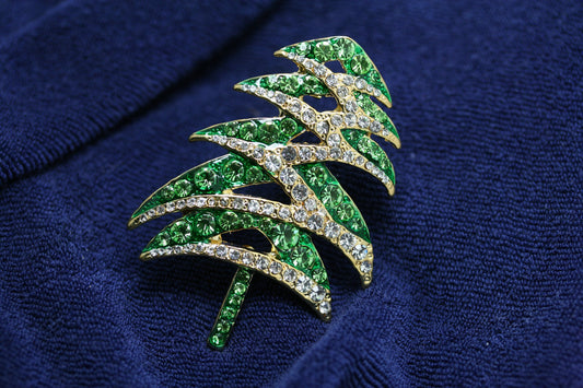 Green Rhinestone Christmas Tree Brooch Pin, Christmas Jewelry Gift