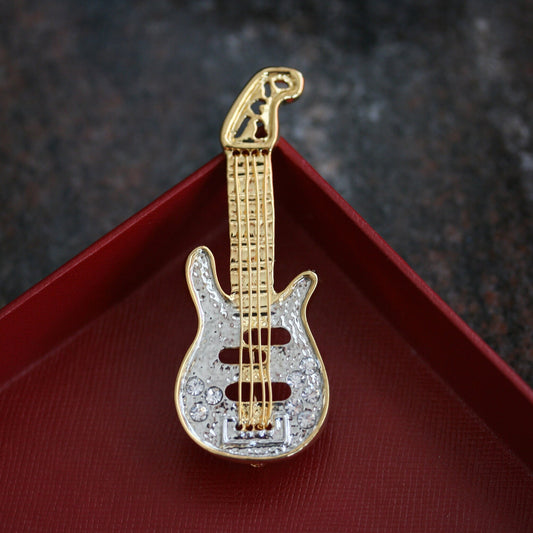 Golden Tone Clear Crystal Colored Rhinestones Acoustic Guitar, Electric Guitar Brooch Pin