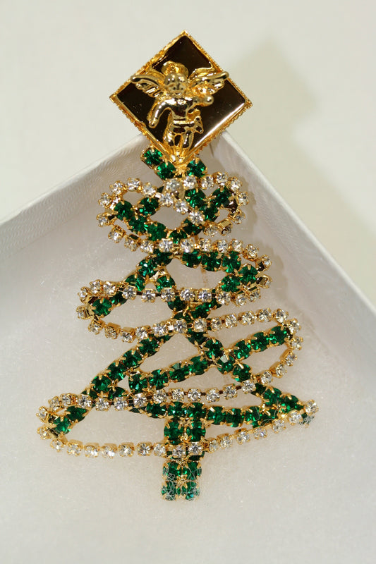 Vintage Rhinestone Christmas Tree Pin Brooch Angel Topper