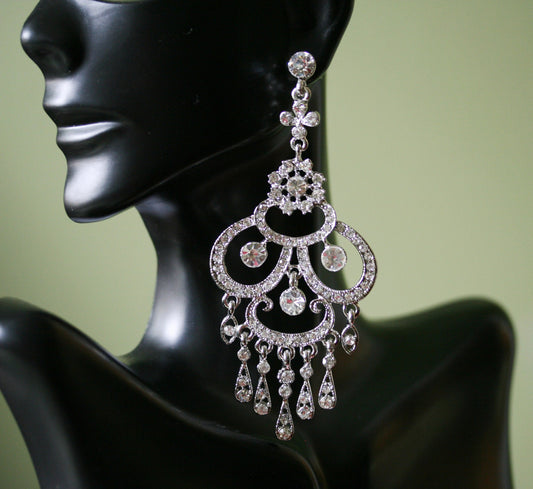 Vintage Rhinestone Chandelier Drop Earrings in Silver Décor Drop Earrings Bridal Wedding Antique Silver Dazzle Crystal Dangle Earrings