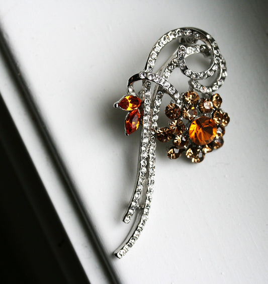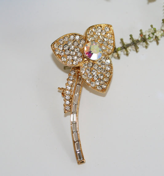 Floral Crystal Brooch Pin Jewelry Christmas or Anniversary Gift For Her