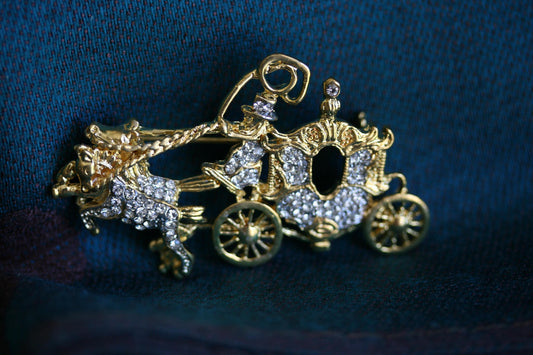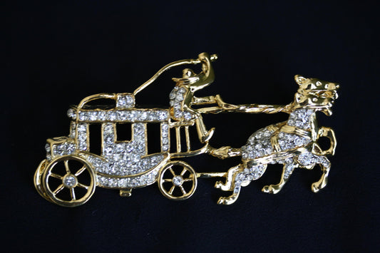 Stunning Vintage Rhinestone Stage Coach Brooch Horse Coach Pin Rhinestone Crystal Carriage Stagecoach Ball