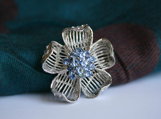 Vintage Blue Crystal Flower Pin Brooch PERIWINKLE FLOWER Pin
