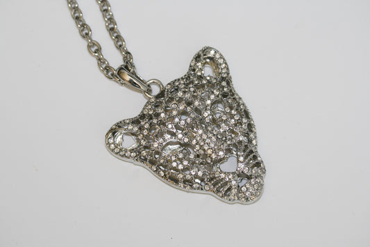 Vintage Silver-plated Leopard Tiger Head Crystal Pendant Chain Necklace
