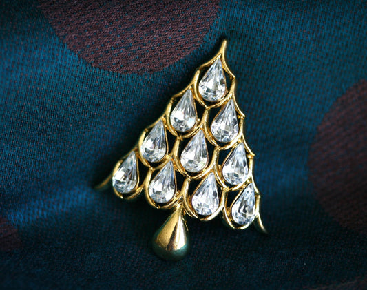 Napier Teardrop Shape Clear Rhinestone Shiny Gold Plated Christmas Tree Brooch Christmas Tree Pin