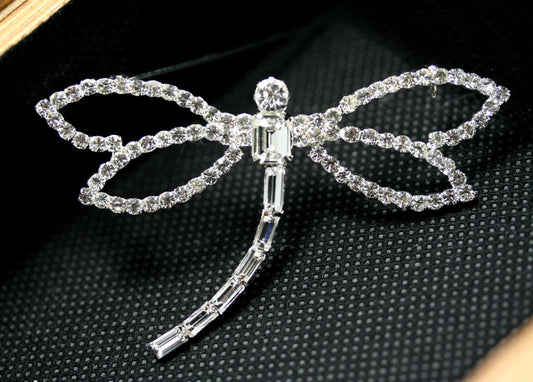 Silver-Tone Metal Elegant Clear Crystal Rhinestone Dainty Dragonfly Pin Brooch