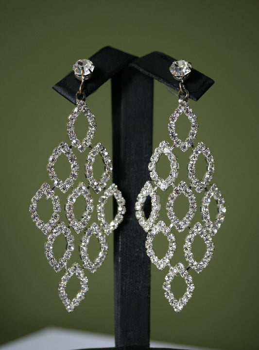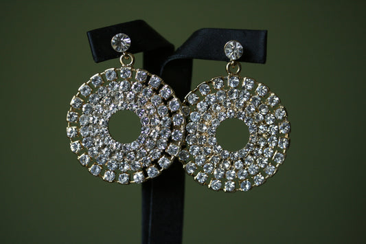 Vintage Massive Rhinestone Hoop Dangling Earrings Gold-tone Pageant Earrings Décor Drop Earrings