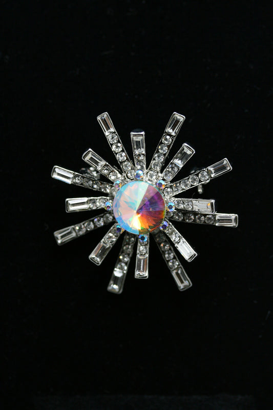 Vintage Clear Rhinestone Starburst Sunburst Hub Spoke Brooch Pin