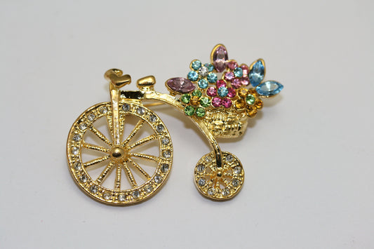 Flower Basket Crystal Bicycle Pin Brooch