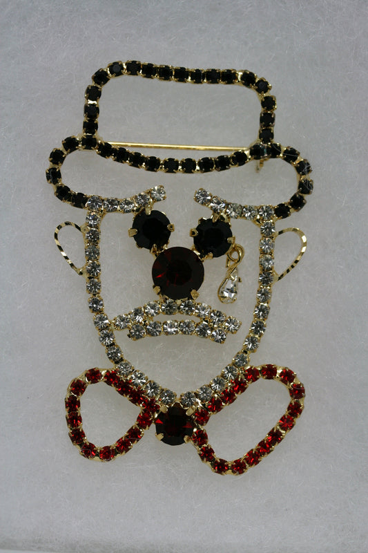 Rhinestone Clown Brooch Pin, Crystal Clown With Teardrop Pin, Clown Face dangle tear Crying Prong Set Rhinestone Brooch Pin