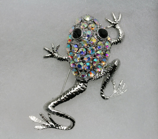 Silver-Plated Climbing Tree Frog Pin Rhinestone Crystals Brooch Jewelry
