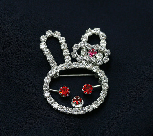 Rhinestone Rabbit Bunny Brooch Pin, Crystal Easter Bunny Face Cut Out Brooch, Easter Jewelry Gift For Her