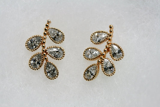 Leaf Stud Earrings with Zircon Gemstones, Rose Gold Leaf Flower Stud Earrings, CZ Rhinestone Minimalist Earrings