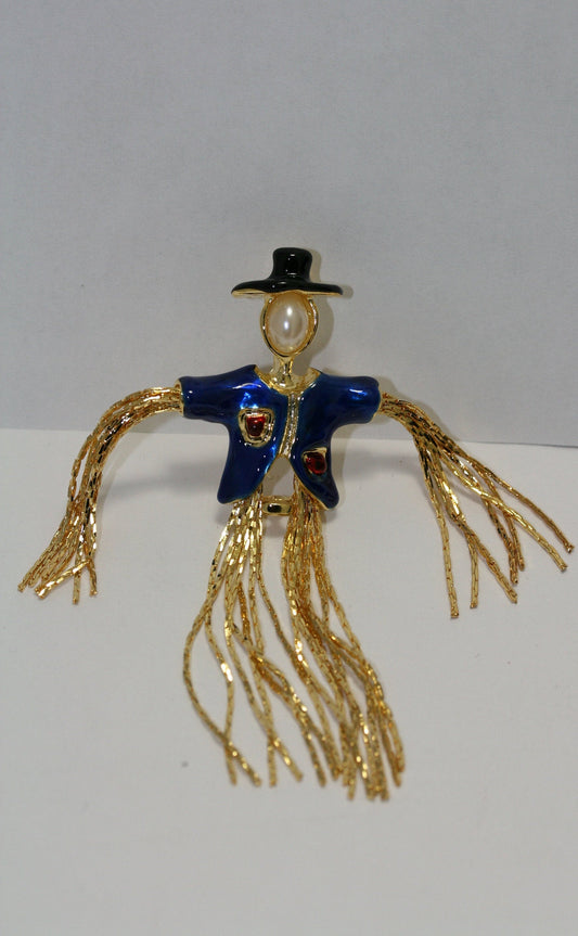 Moves Halloween Scarecrow With Pearl Pin Brooch