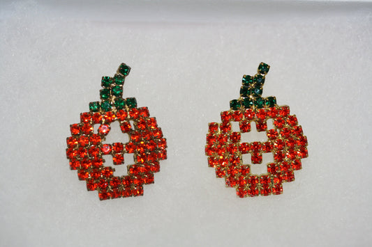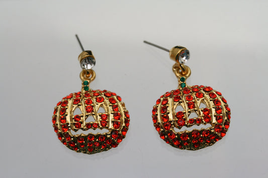 Halloween Pumpkin Drop Dangle Earrings with Orange Crystal Rhinestones, Halloween Earrings, Pumpkin Earrings