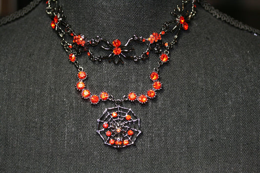 Vintage Halloween Rhinestone Spider, Web, Skull Choker Necklace Jewelry