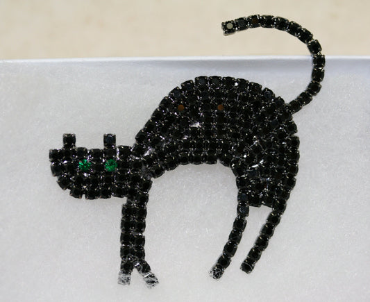 Black Cat Pin, Rhinestone Halloween Black Spooky Cat Brooch Pin, Crystal Black Cat Brooch